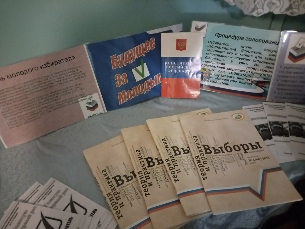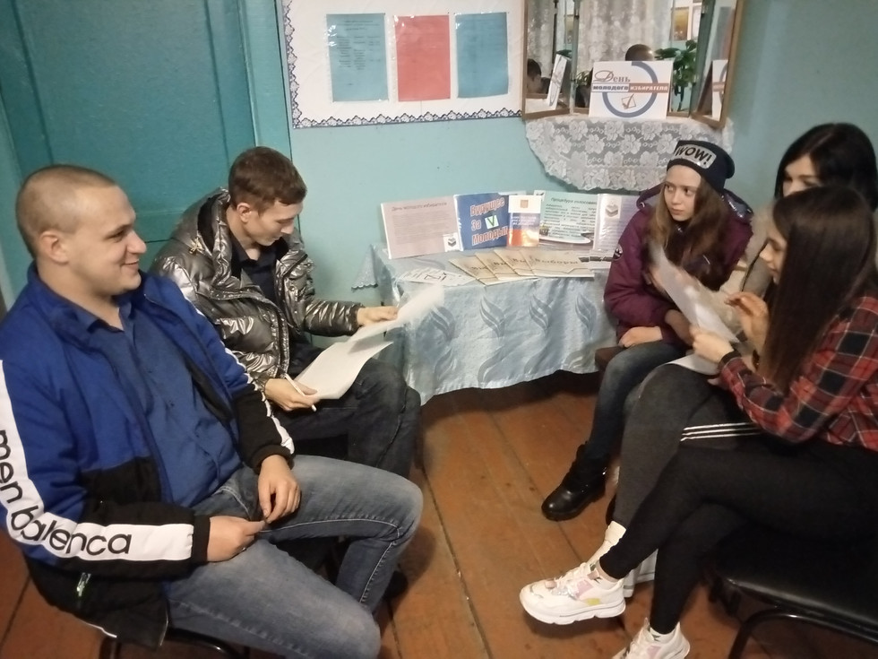 Молодым людям предлагалось назвать слова, связанные с понятием "выборы" , разгадать кроссворд, ответить на вопросы викторины. Также для них была приготовлена книжная выставка, на которой можно была познакомиться с историей Дня молодого избирателя, со своими избирательными правами, порядком голосования. В заключение информационного часа молодёжи были выданы буклеты–памятки «Азбука молодого избирателя».